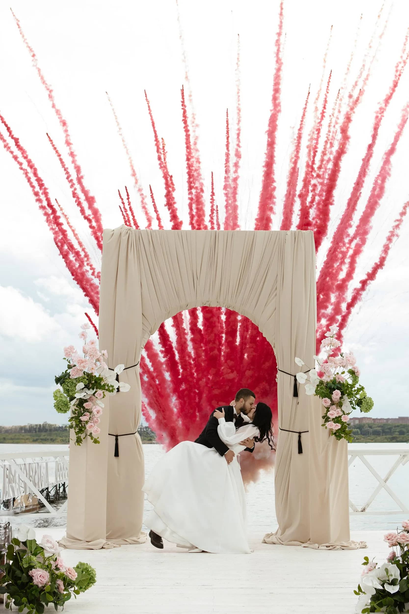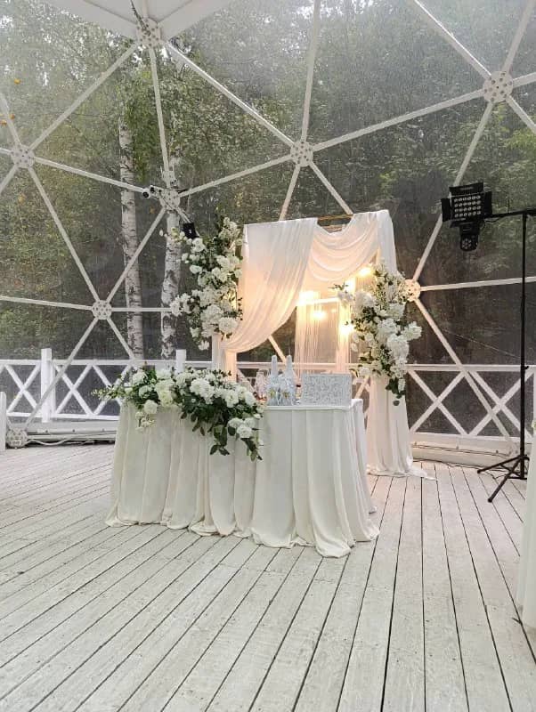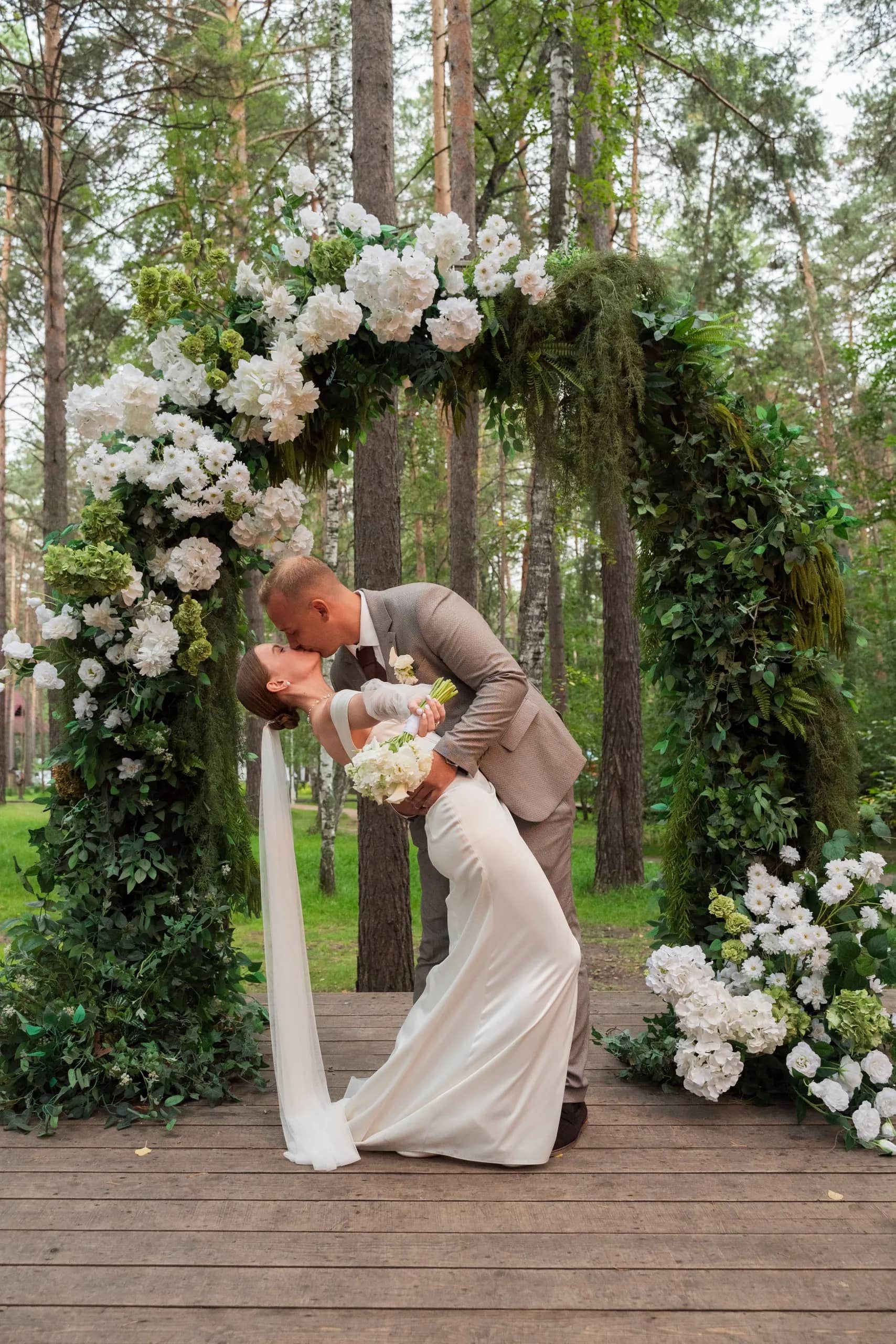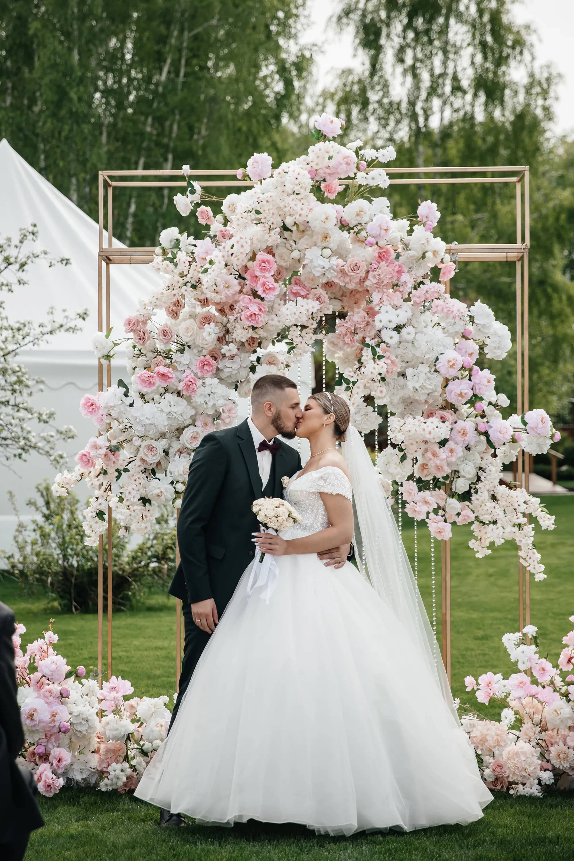 Сегодня зона выездной регистрации зачастую оформляется так же пышно, как и президиум молодожёнов, так как сама церемония считается важной частью свадьбы. У нас огромный выбор самого разного конструктива и, конечно же, богатое разнообразие цветочного оформления. Вам точно будет из чего выбирать!